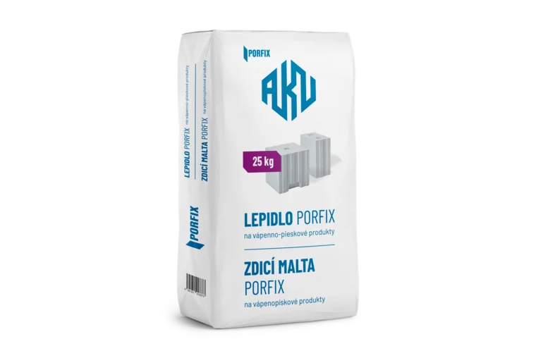 Balenie lepidla PORFIX AKU P231 (25 kg) určeného pre tenkovrstvové murovanie vápenno-pieskových tvárnic PORFIX AKU. Malta zabezpečuje vysokú pevnosť spojov, presné škáry a akustickú účinnosť muriva, preto predstavuje systémové riešenie pre nosné aj medzibytové steny s dôrazom na stabilitu a kvalitu realizácie.